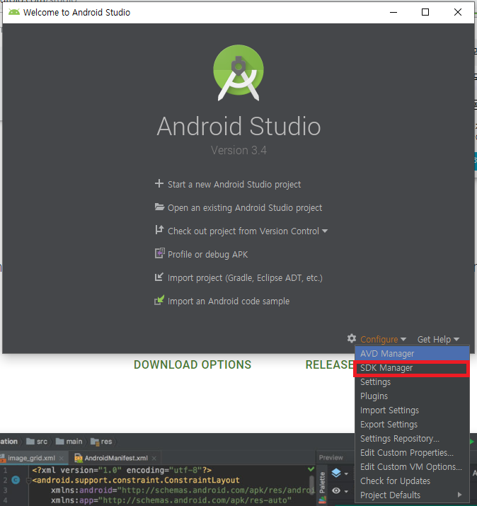 Configure에 SDK Manager를 클릭한다.