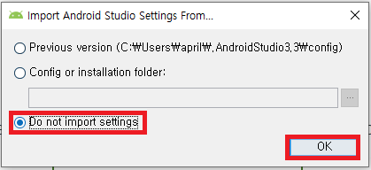 우리는 새로 설정할 것이므로, Do not import settings를 클릭한다.