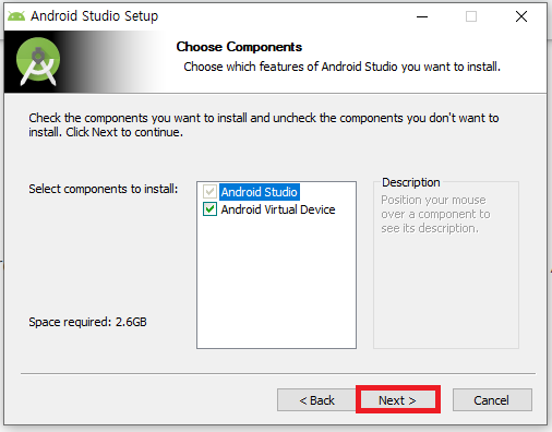안드로이드 스튜디오를 사용하기 위해서는 몇가지를 추가적으로 더 설치해야하므로,