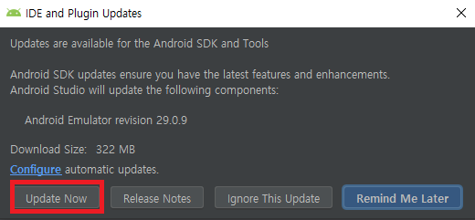 Update Now를 선택하여 Android SDK and Tools를 업데이트 시켜준다.